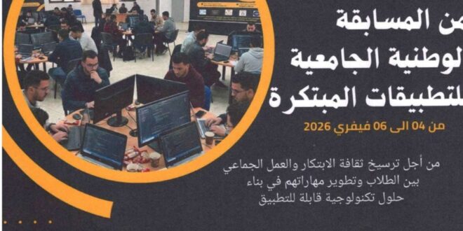 دعوة للمشاركة في الطبعة الأولى (01) من المسابقة الوطنية الجامعية للتطبيقات المبتكرة، المنظمة تحت إشراف جامعة سيدي بلعباس – جيلالي اليابس، خلال الفترة الممتدة من 04 إلى 06 فيفري 2025.